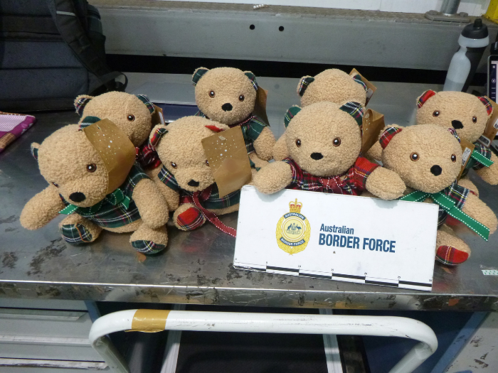 ജനുവരി 15 (വിക്ടോറിയ): ബെൽജിയത്തിൽ നിന്ന് കളിപ്പാട്ടങ്ങൾ എന്ന വ്യാജേന എത്തിയ പാഴ്സലിലെ ടെഡി ബെയറിനുള്ളിൽ ഒളിപ്പിച്ച നിലയിൽ 6.8 കിലോ മയക്കുമരുന്ന് കണ്ടെത്തി.